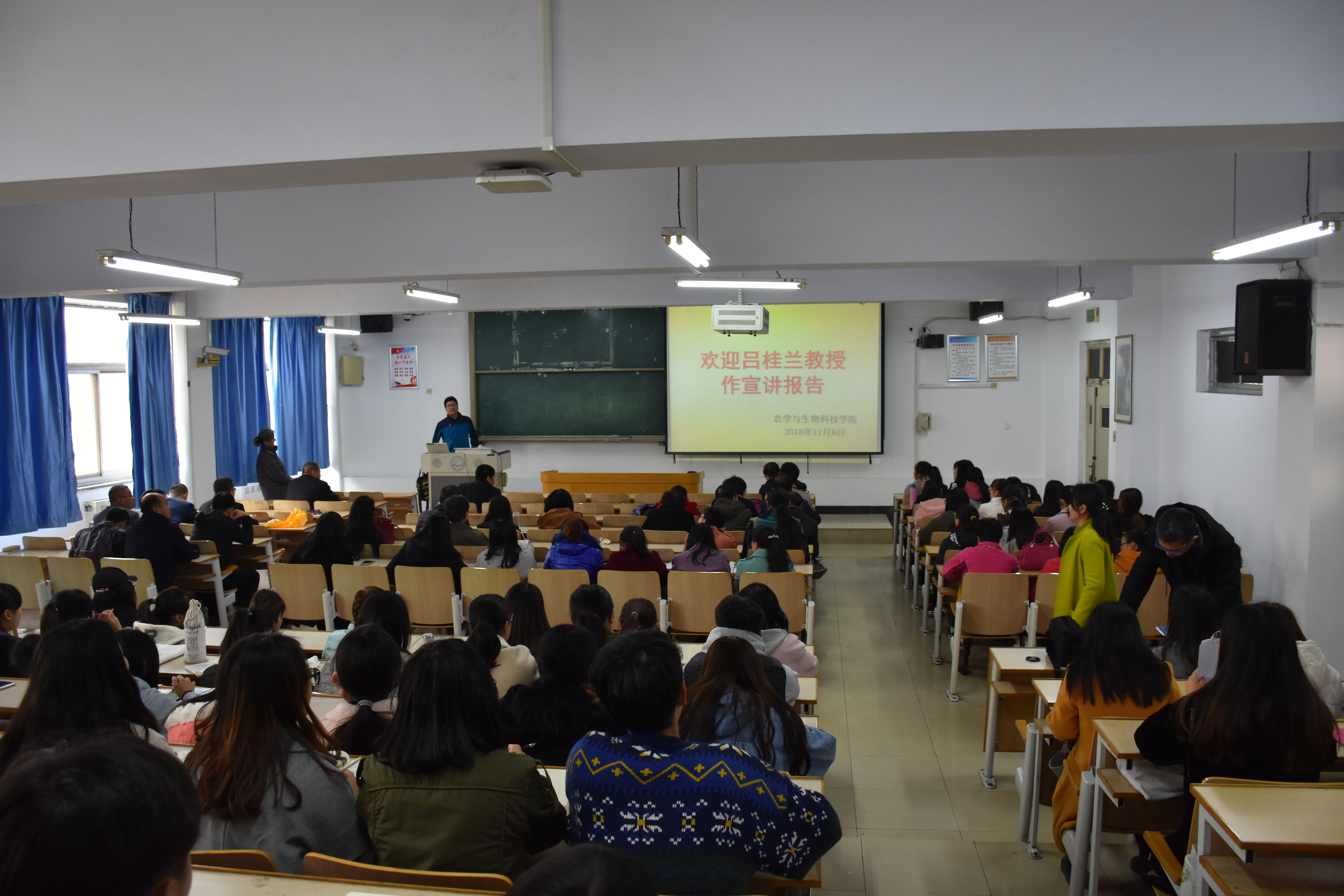 2018年11月08日,bat365正版唯一官网党委邀请校思想政治理论教育宣讲团成员吕桂兰老师围绕学习宣传贯彻十九大会议精神做专场学习宣讲活动。约200名师生参加了学习活动。